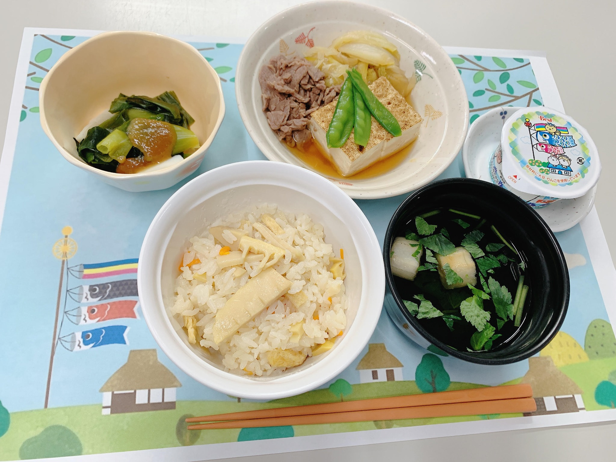 | 5月 | こどもの日 | たけのこご飯、肉豆腐、ぬた、清汁 こどもの日デザート |