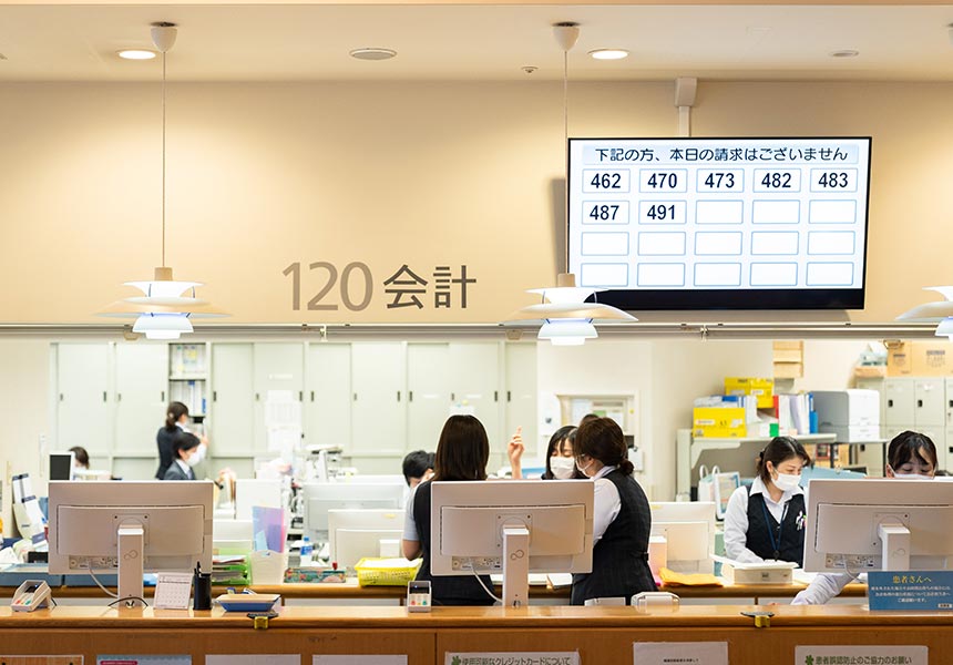 | 会計窓口 | 中央棟1階 | 平日 8:30~18:00 土曜 8:30~17:00 |